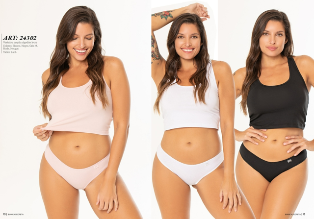 Bianca Secreta Art. 24311 Top largo algodon y lycra $ 4424.99 CALIDAD PREMIUM PRESENTADO EN BOLSA DE TELA INDIVIDUAL ¡¡¡ y Art. 24360 Tanga less regulable algodon y lycra Pack x 3 unidades $ 9899